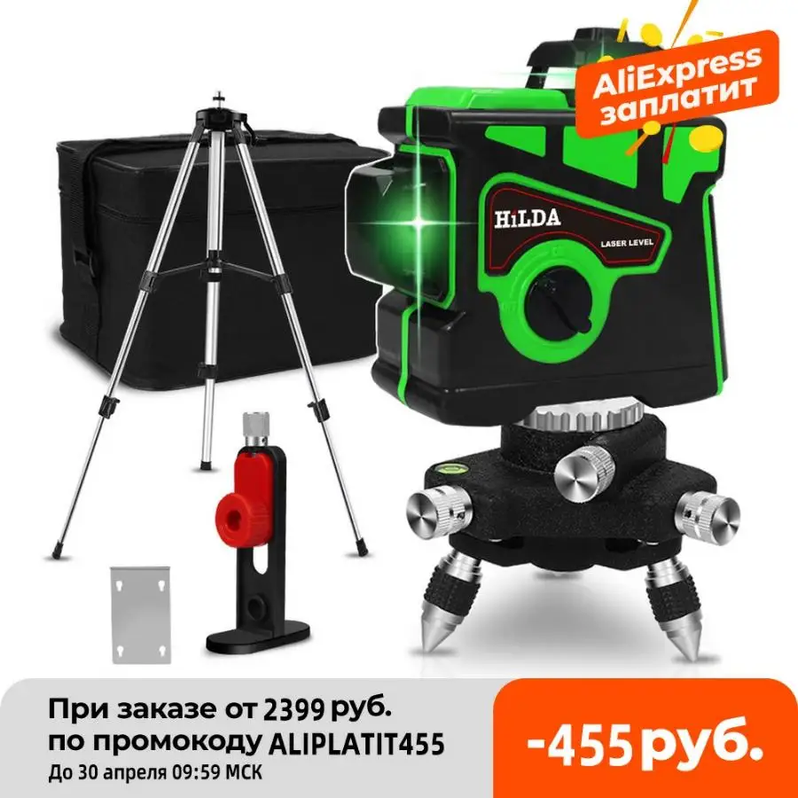 мне пришел без на штативе не хватает ножки HILDA лазерный уровень 12 линий, HILDA мощный 3D лазерный уровень самовыравнивания, зеленый